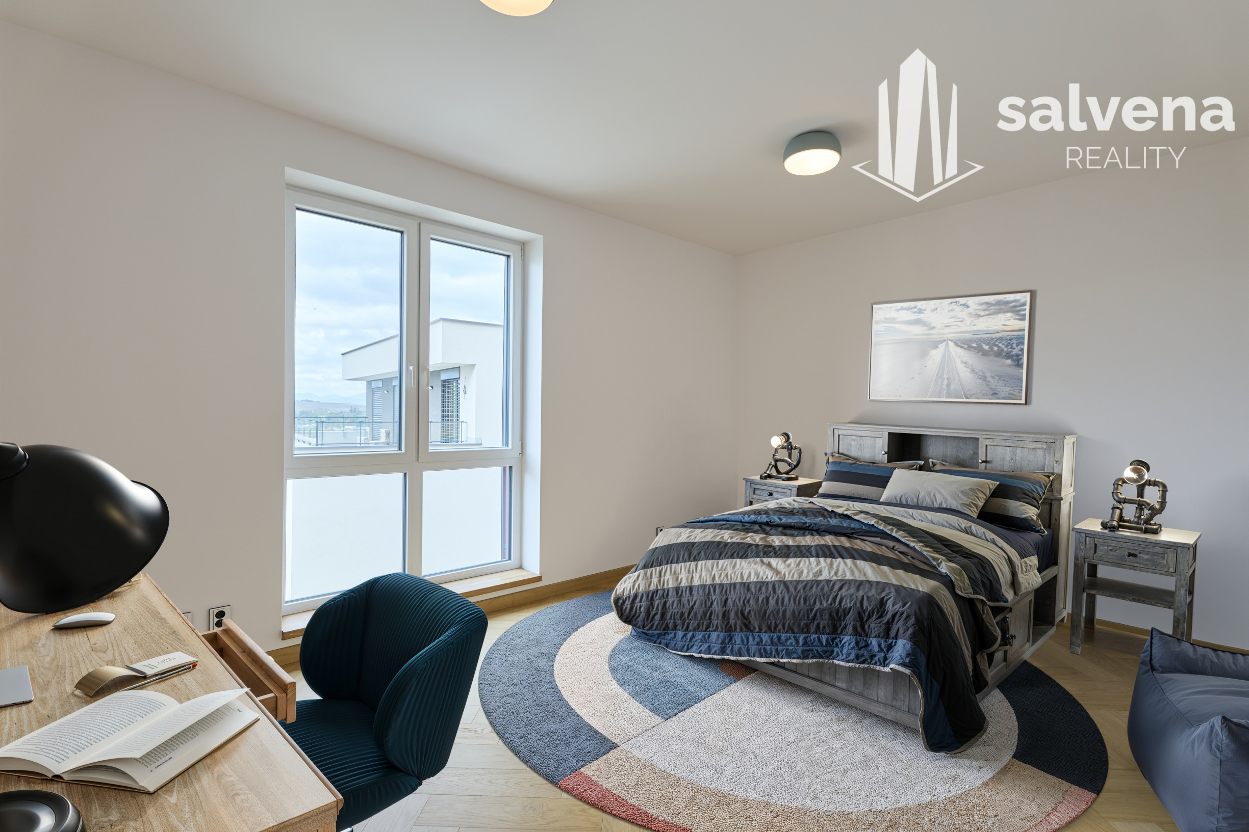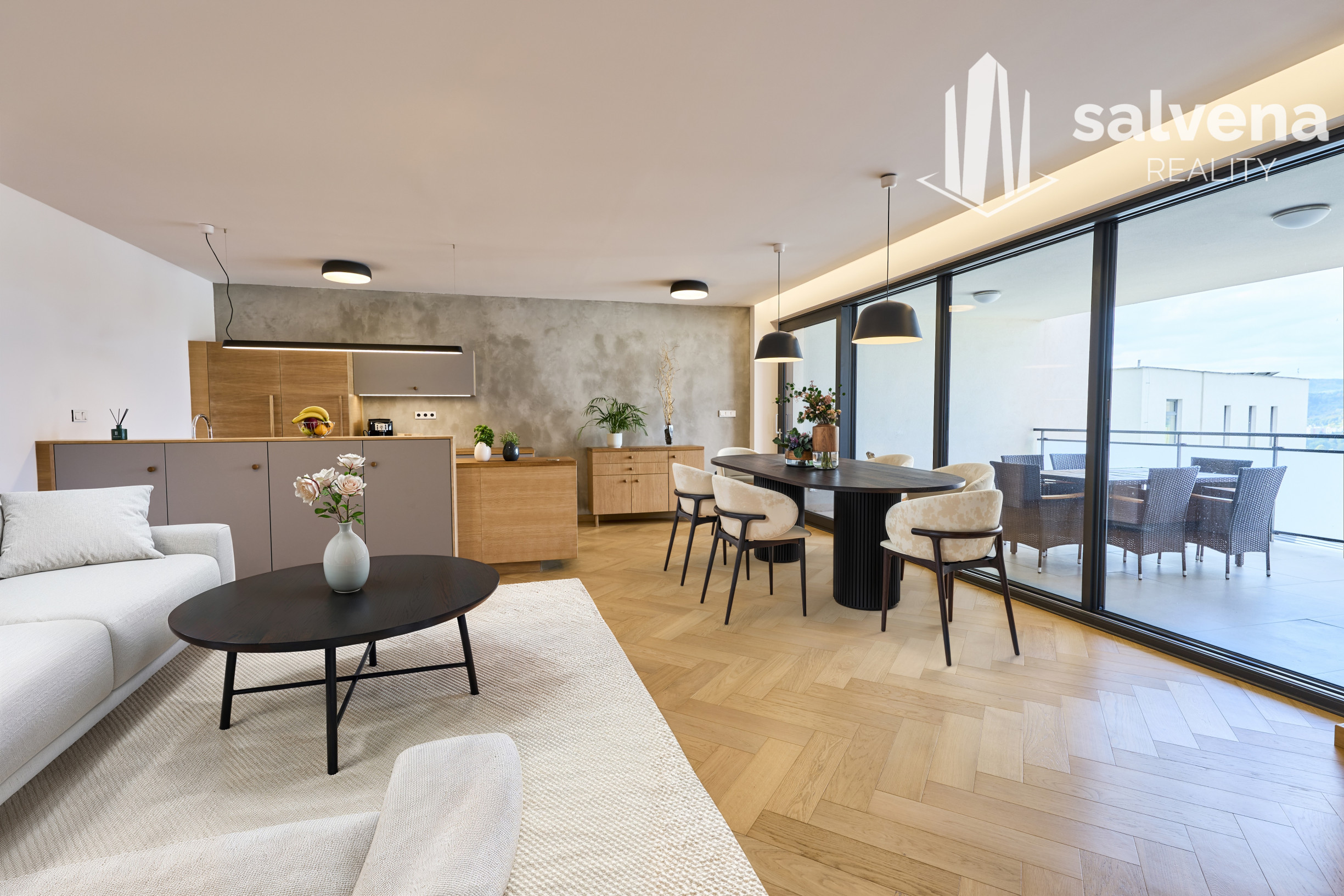 Keď sa sklo zasunie a mesto sa otvorí pod vašimi nohami, pochopíte. Toto nie je „trojizbák“. Toto je 114 m² energie, ktorú cítite v kostiach; 22,5 m² terasy – súkromnej lóže s panorámou, kde sa podpisujú dohody, nalieva espresso a večer padá svetlo na parkety ako v dobrej scéne z filmu. Čisté línie, remeslo, vlastné kúrenie Vaillant. Všetko pod kontrolou. Bez kompromisov.