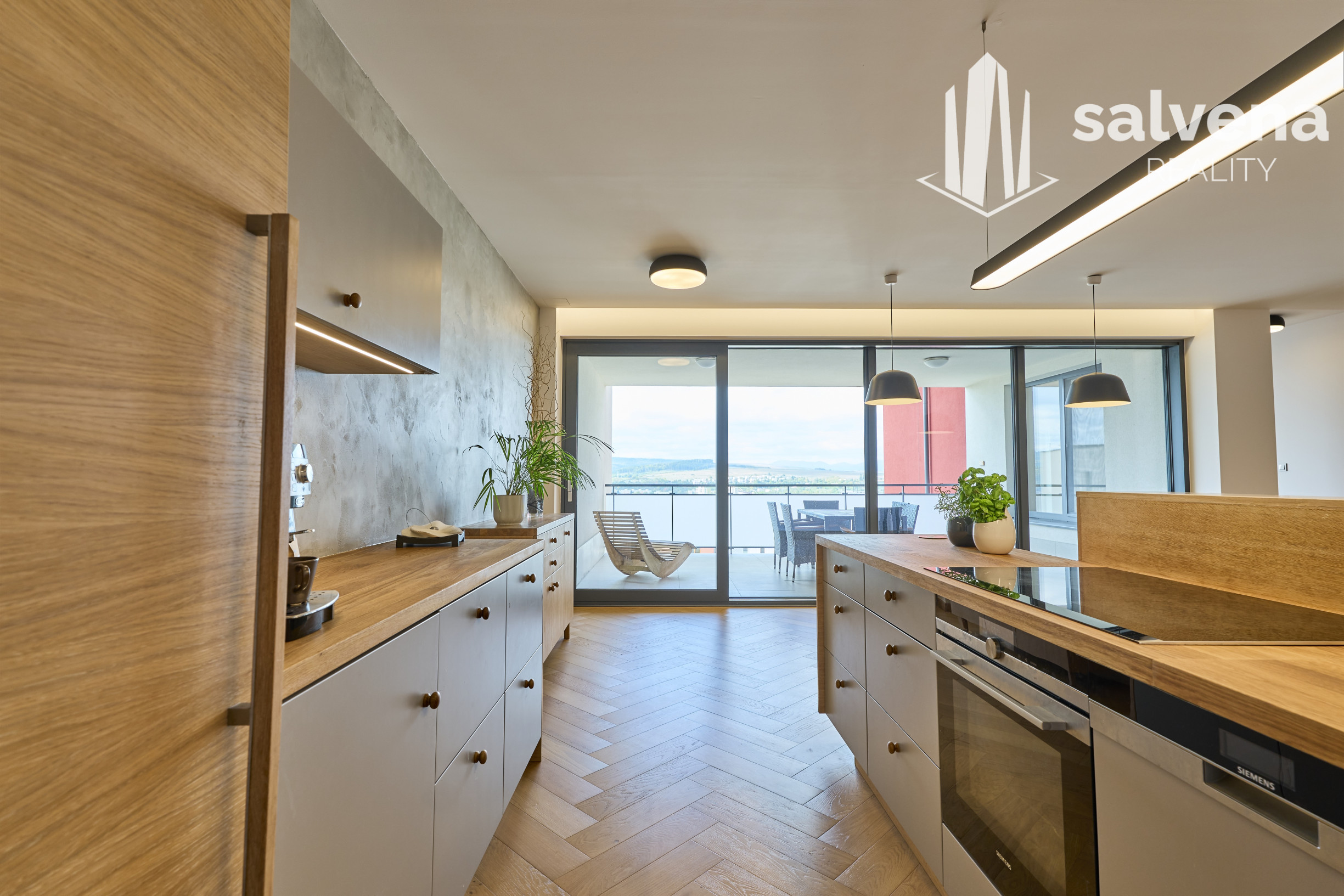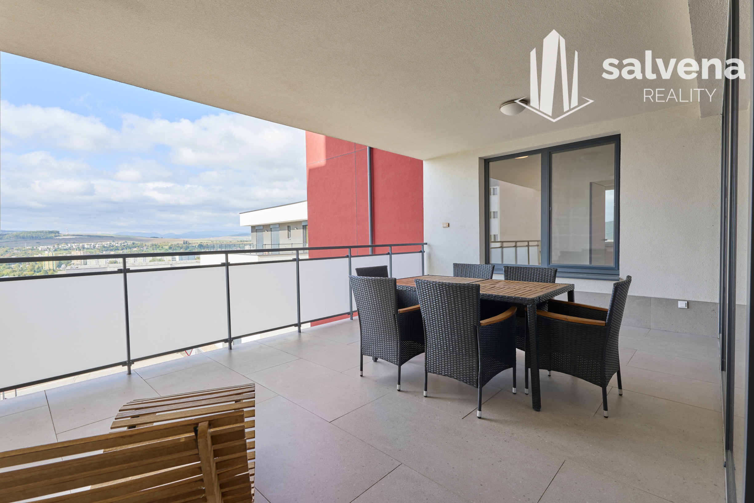 22,5 m² krytého exteriéru: lounge, gril, bylinky, pohľad, čo nikdy neomrzí. Večer mesto ako na dlani so západom slnka. Všetky ročné obdobia majú svoje „wow“.