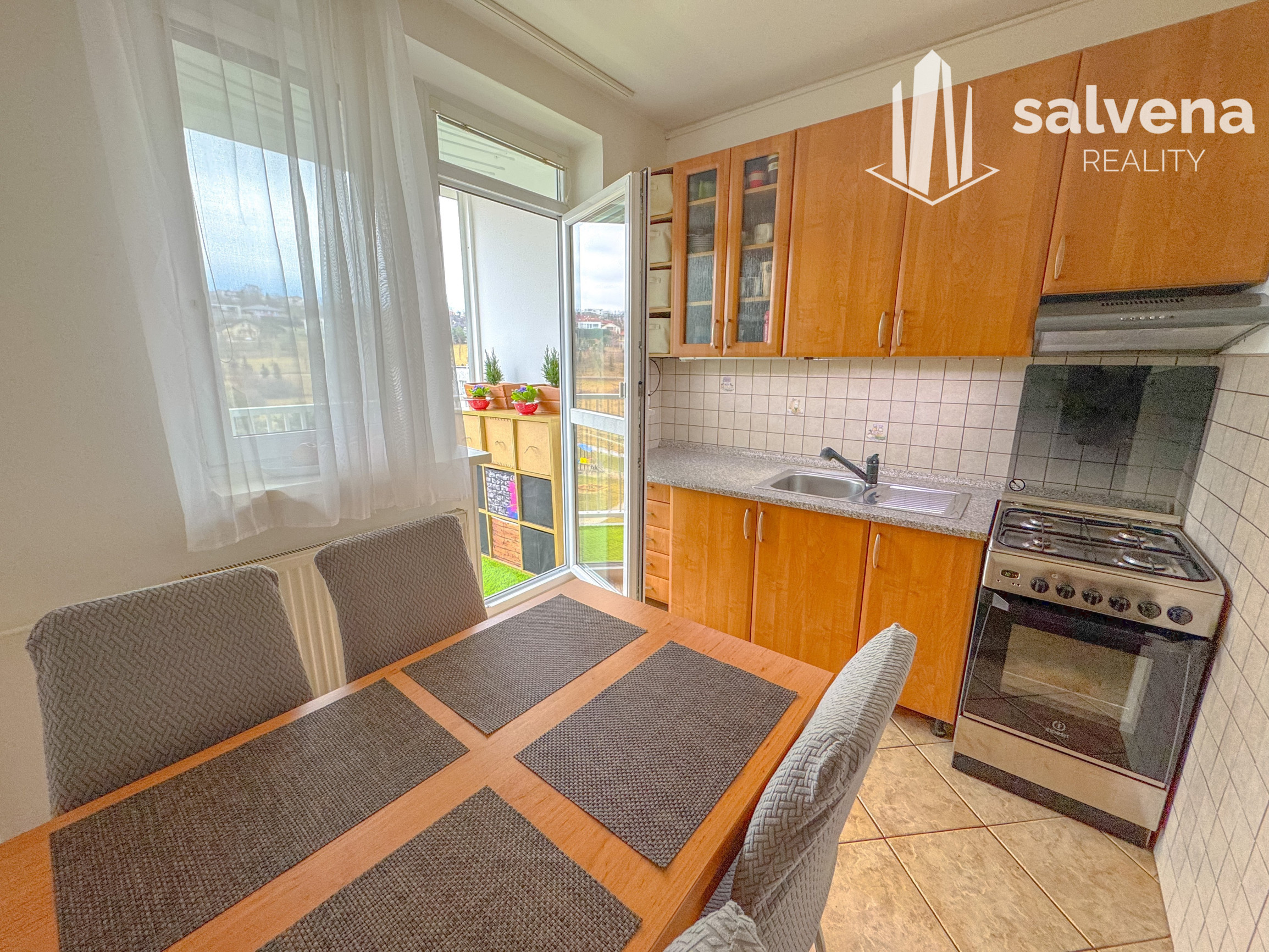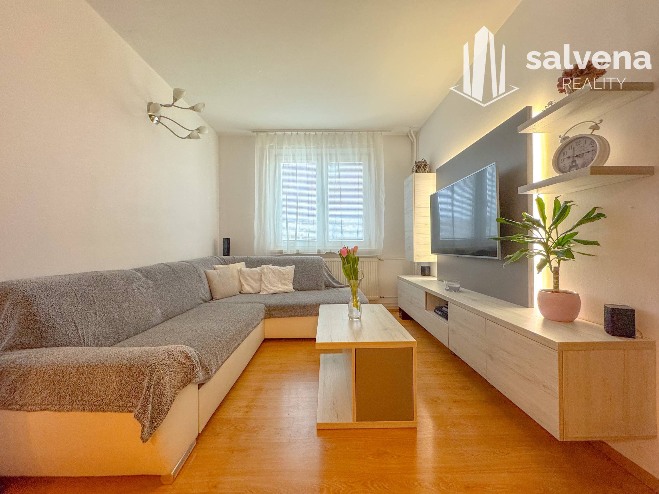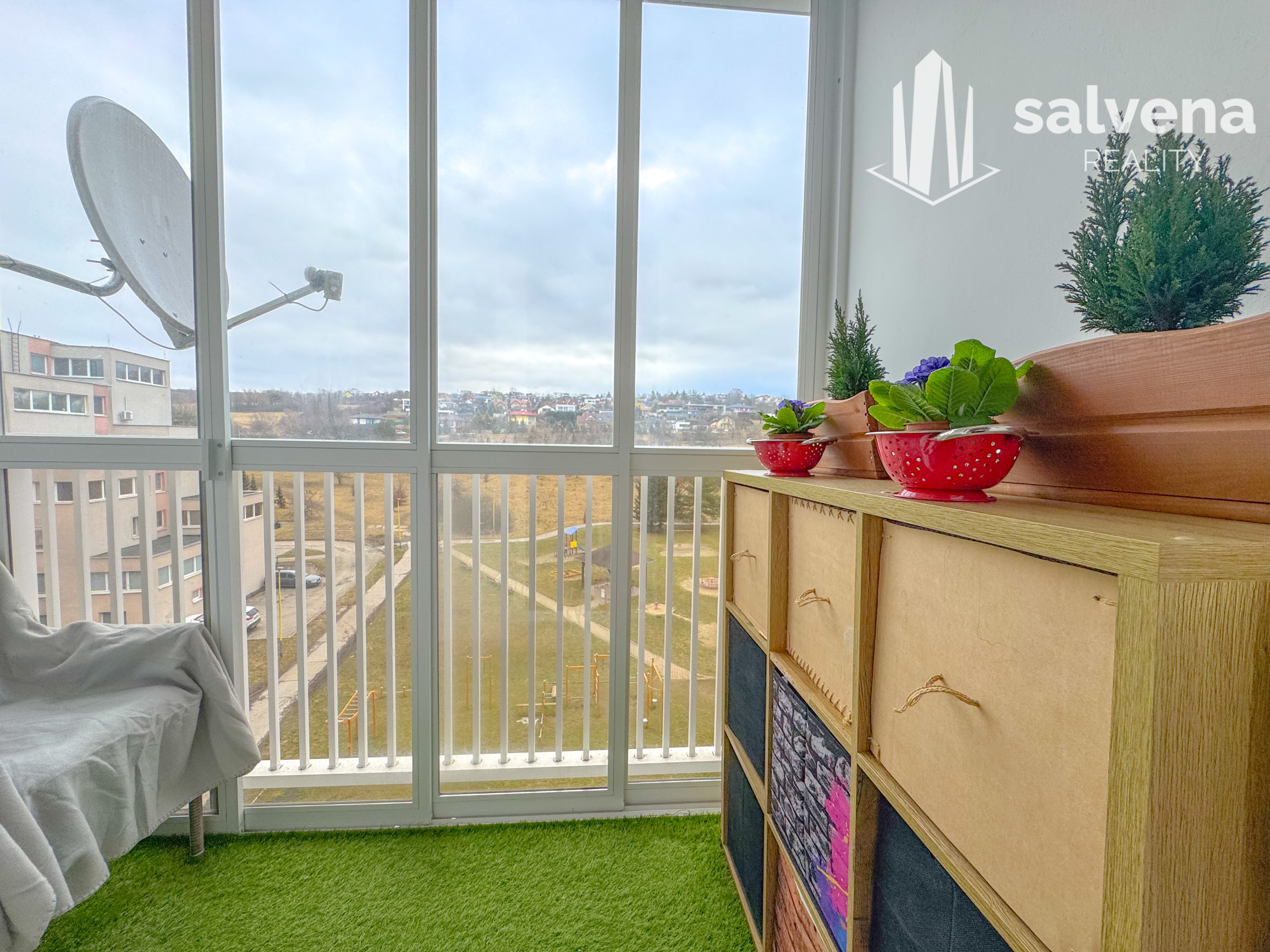 Byt sa nachádza na 5. podlaží z 8, je stredový a má zasklenú loggiu o výmere 4 m². Orientácia V–Z prináša prirodzené svetlo počas celého dňa a príjemné vetranie.