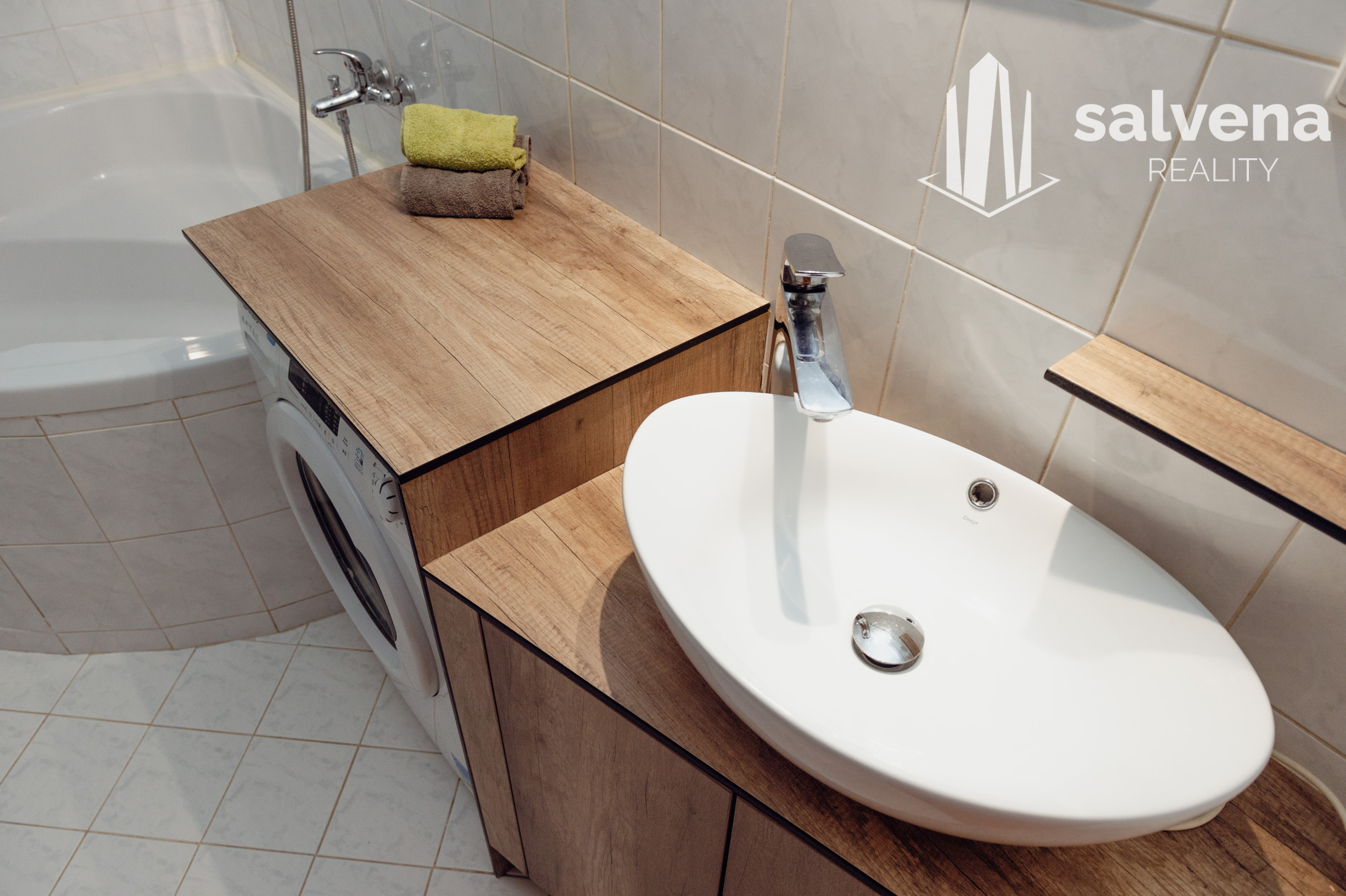 Byt prešiel rekonštrukciou približne v roku 2010. Má novú elektroinštaláciu, bezpečnostné vchodové dvere, plastové okná, murované jadro z Ytongu a kúpeľňu s veľkou rohovou vaňou. Kuchyňa je moderná. V byte ostávajú všetky vstavané nábytky aj vstavané spotrebiče.