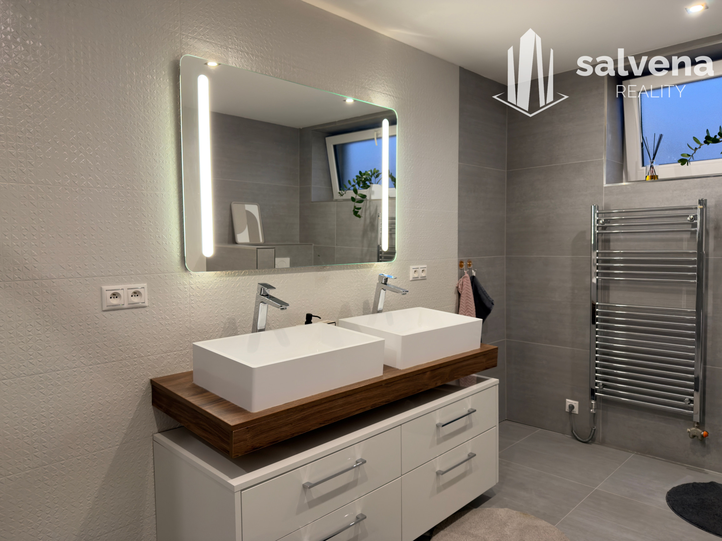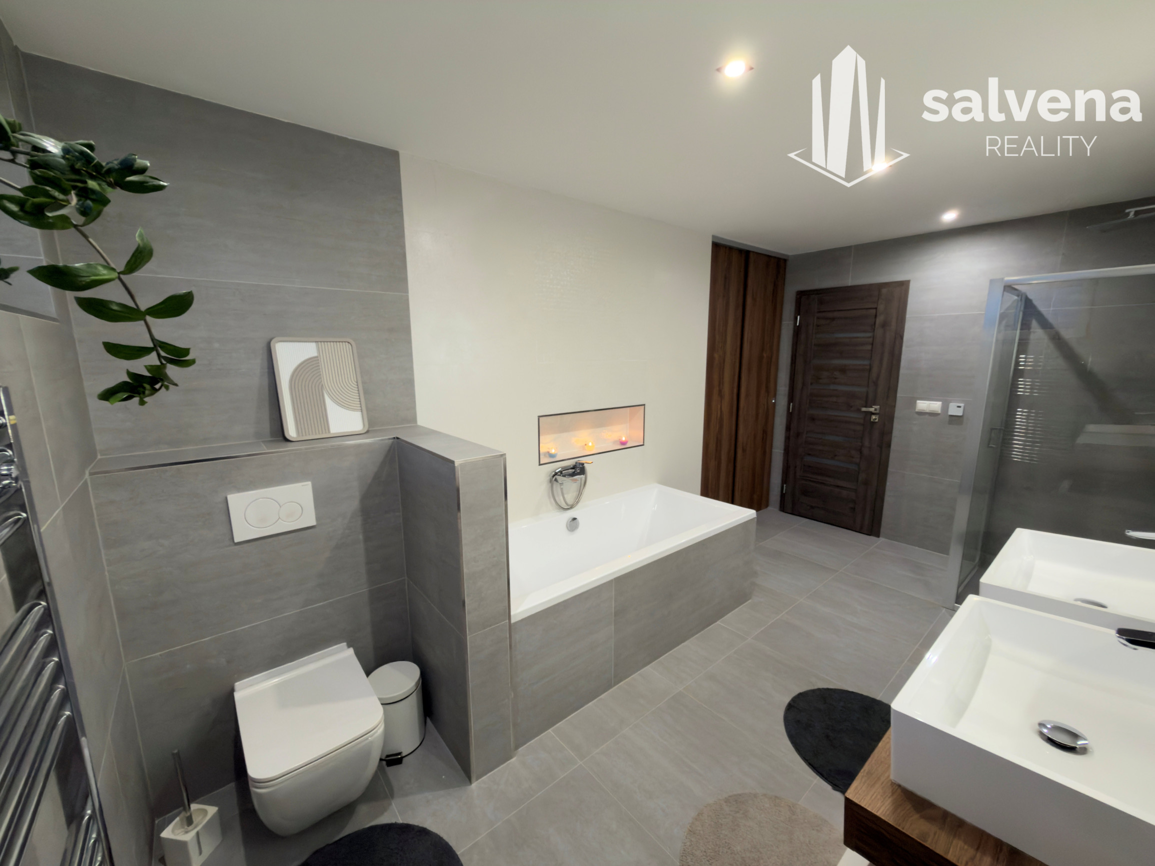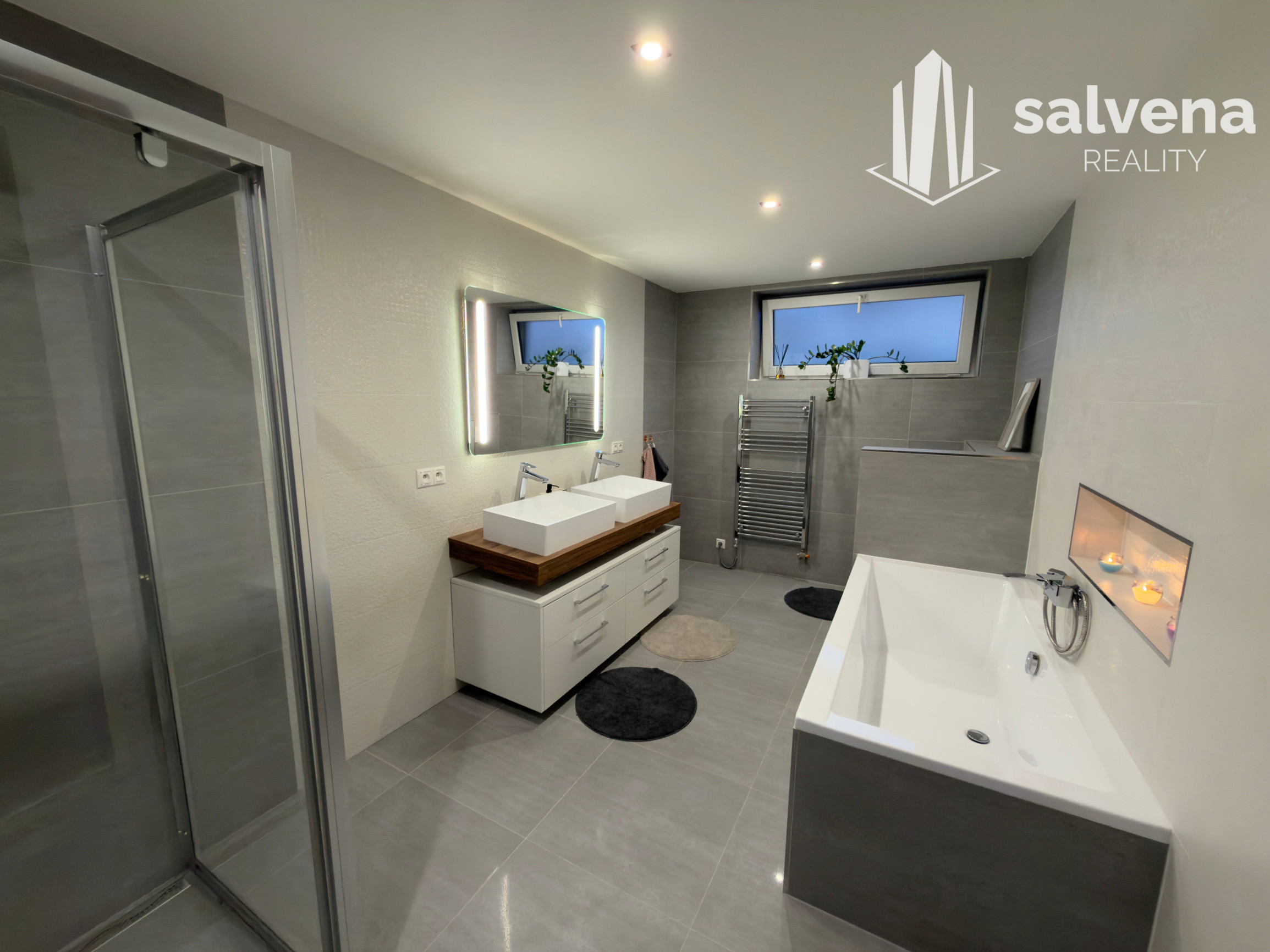 Vaňa, sprchový kút a dve umývadlá zabezpečia pohodlie pre každodenné fungovanie celej rodiny.