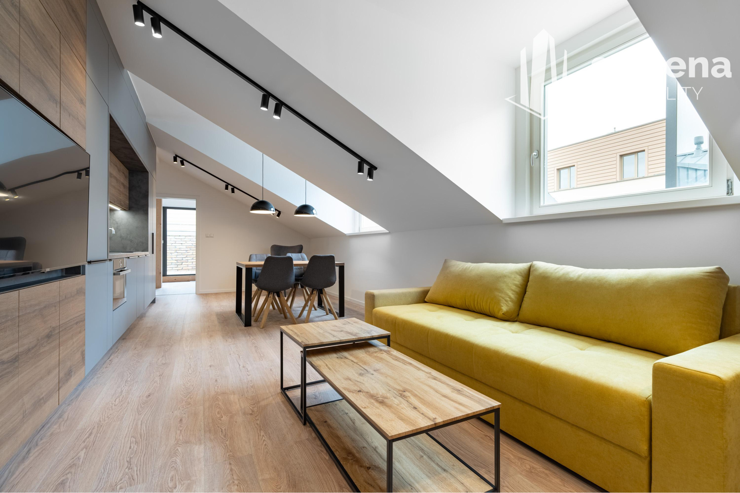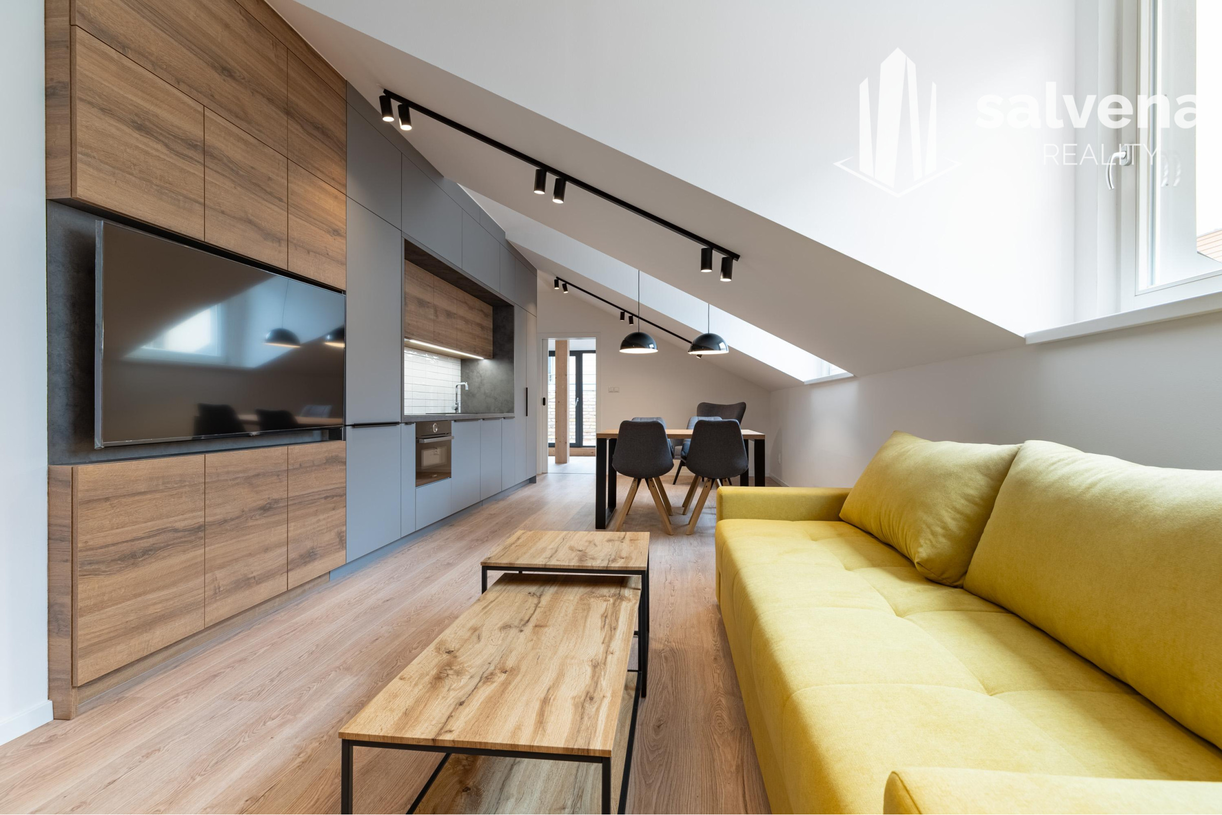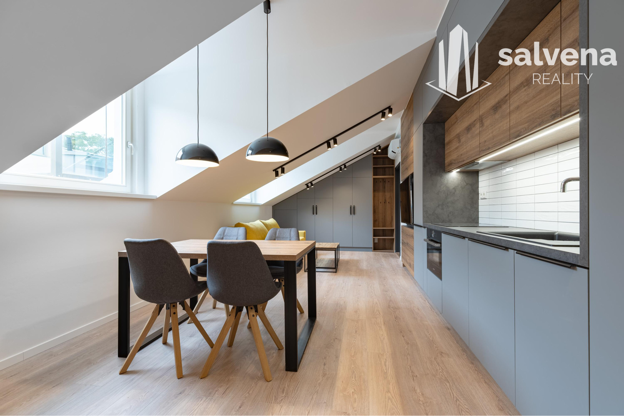 Byt sa nachádza v podkroví komplet zrekonštruovaného historického bytového domu s výťahom. Jeho úžitková plocha predstavuje 53 m², ku ktorým patrí aj priestranná terasa s rozlohou 7,4 m². Celý priestor je dokonale zladený – od kvalitných podláh, cez zabudované osvetlenie až po drevené a kovové detaily, ktoré vytvárajú štýlovú, no stále veľmi útulnú atmosféru.